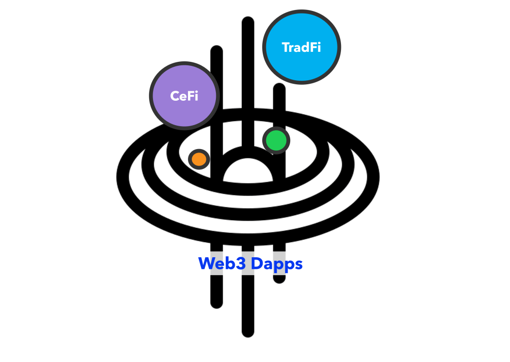 The CeFi (centralized finance) world operates on top of this aperture. (NOTE: CeFi is just a term for financial services that are provided through a single private entity as opposed to being administered in a decentralized manner. Coinbase—it’s primary custodial trading app, at least—is one of the largest CeFi platforms in the industry).